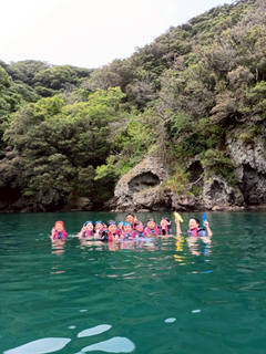 夏合宿3日目も、前日に引き続きカッター訓練を行いました。 この日は少し遠くの入江を目指してカッターを漕ぎ出し、団員全員が力を合わせて無事にたどり着くことができました。入江では、澄んだ海で泳いだり、水遊びをしたりと、自然の中で楽しいひとときを過ごしました。 夜にはお待ちかねのキャンプファイヤー!火を囲んで歌い、踊り、笑い声が絶えない素敵な時間となりました。 みんなの絆が一層深まった一日でした。 |