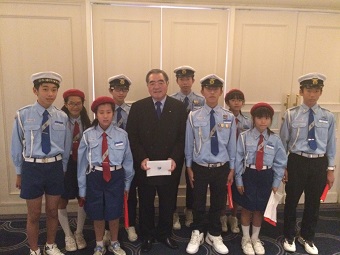 船舶37隻、航空機15機が参加し、普段間近で見ることのない人命救助やテロ対策の訓練の実演を、団員たちは真剣に見学していました。