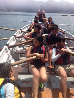 小学生のカッターレースもあるため、小学生用のオールを使い、一生懸命練習中です。